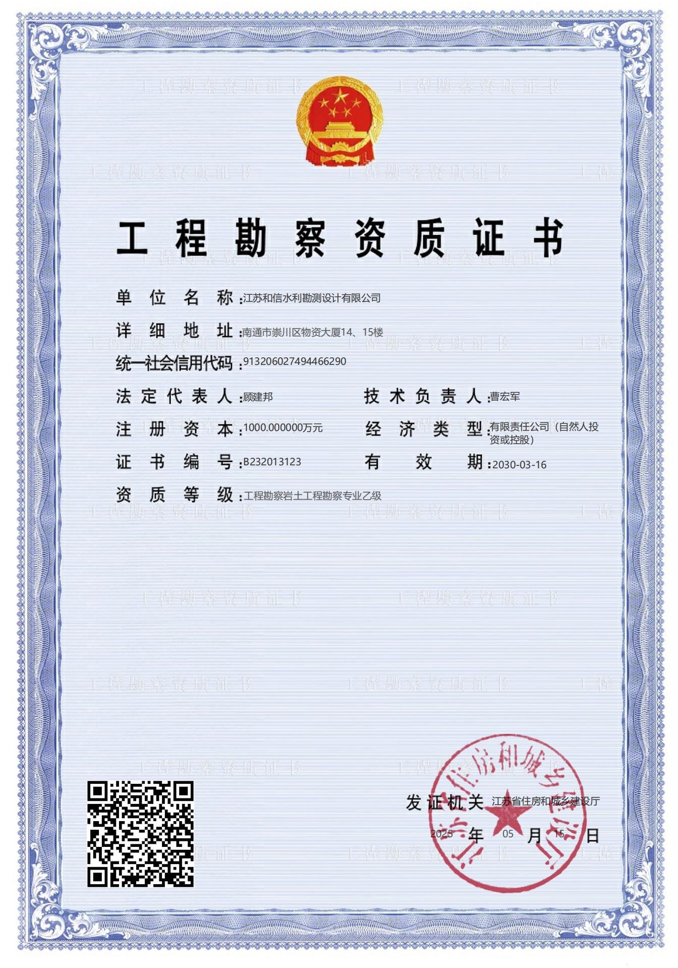 岩土勘察资质证书