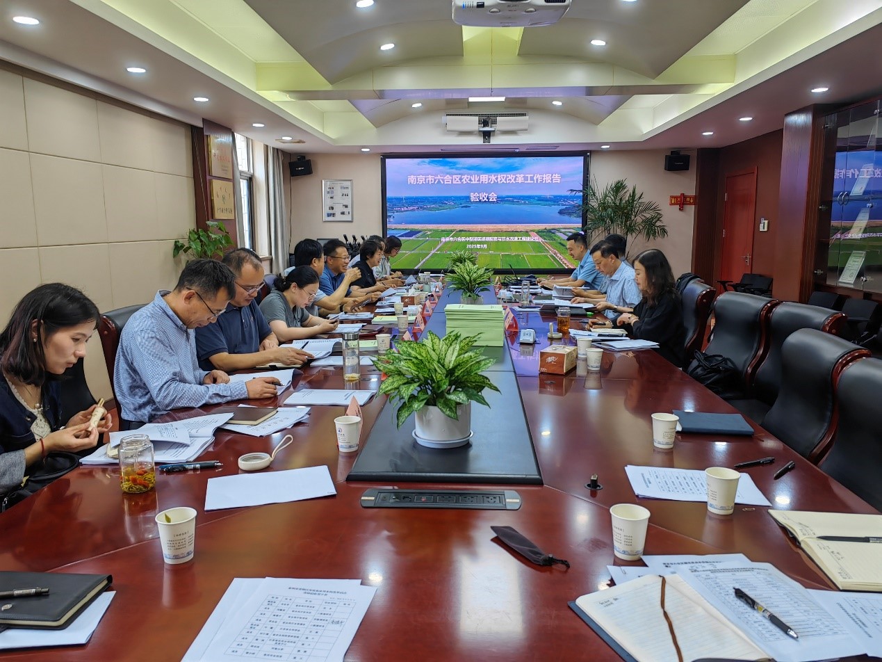 2025年9月25日,江苏省水利厅在南京组织召开了南京市六合区和泰州市姜堰区深化农业用水权改革试点验收会,参加会议的有南京市水务局、六合区水务局、泰州市水利局、姜堰区水利局及相关部门的代表及特邀专家,我司作为试点承担单位、验收报告编制单位出席会议。