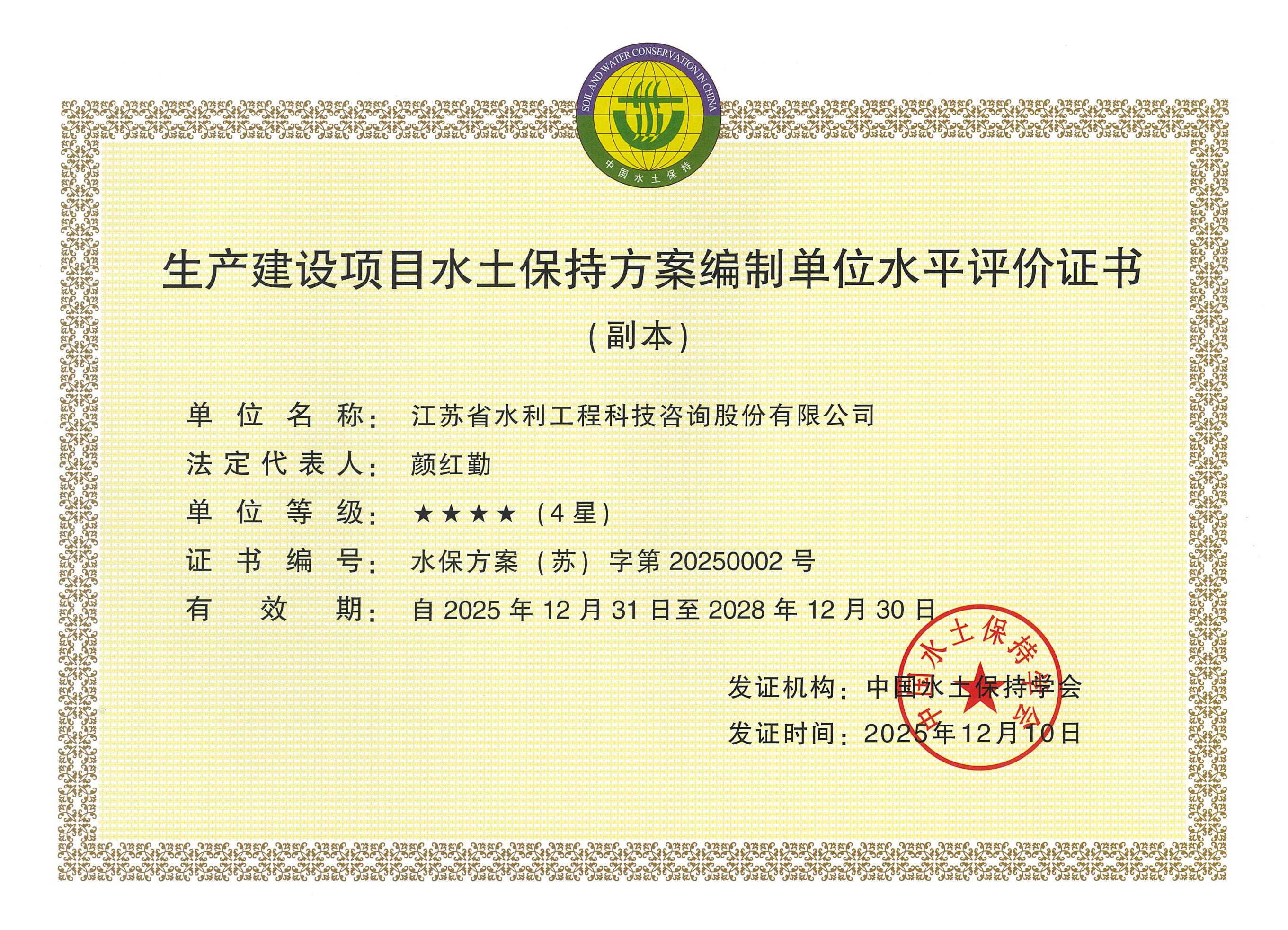 > 生产建设项目水土保持方案编制单位水平评价证书